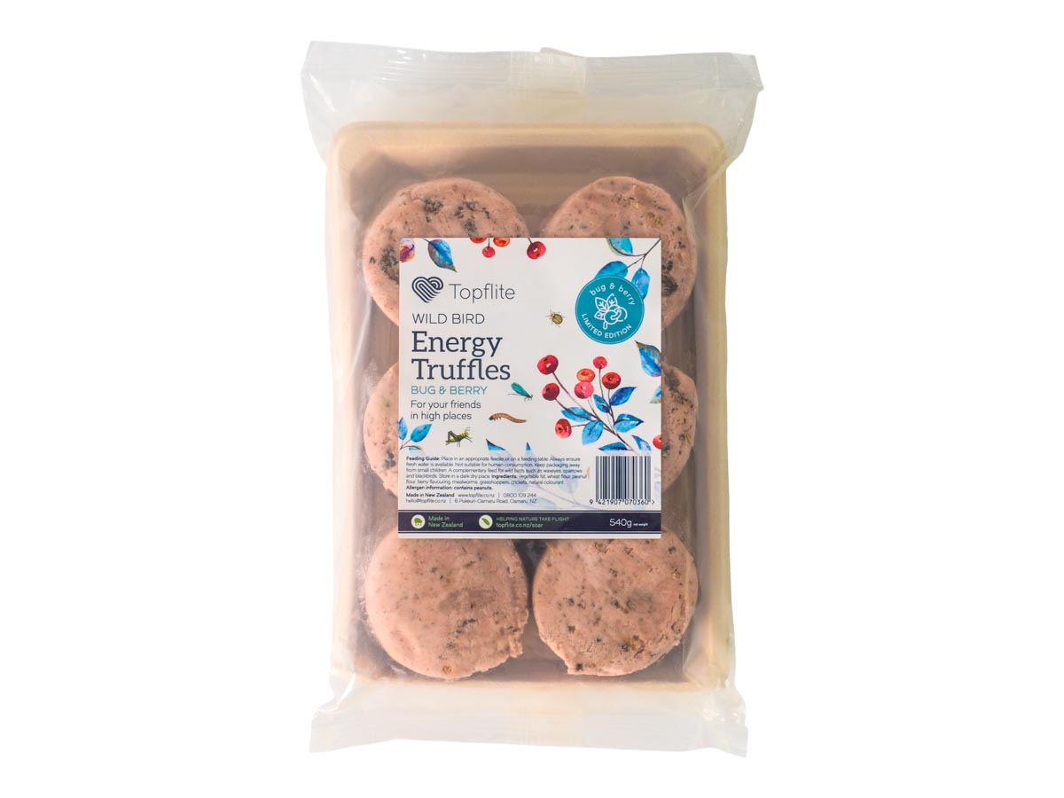 Bring in the garden birds with Topflite Bug & Berry Energy Truffles. Super-charged with real berries and dried insects for extra protein. NZ made.