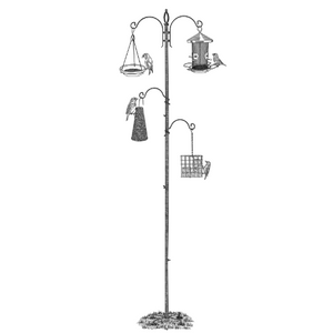 Predators will be at a loss while the birds flock to feed at the Hangout. Up to four feeders can be suspended from the wrought iron curlicues of this freestanding hanger, which is easy to stake into the ground with a sturdy base that keeps it upright. Provide a variety of feeds and you’ll be able to please birds of all feathers.