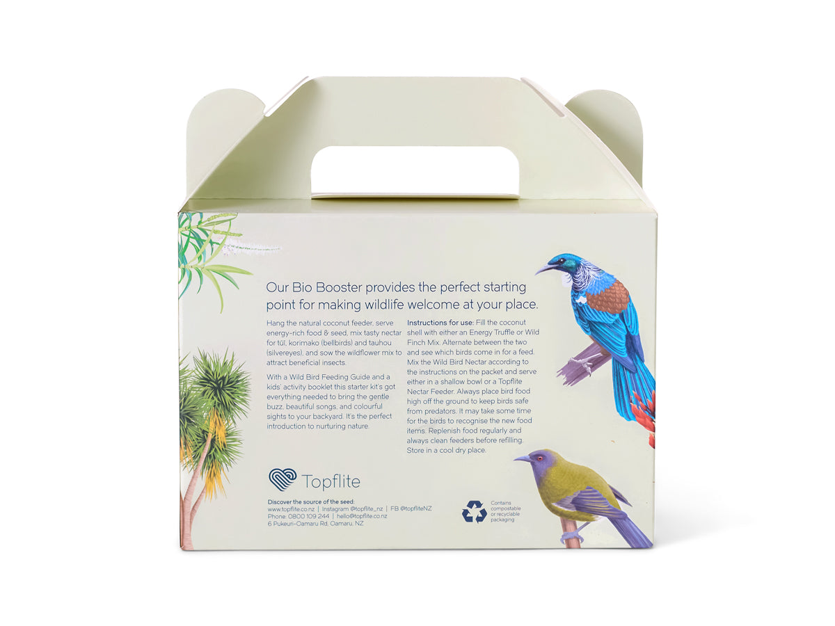 NZ-made Energy Truffles can attract the native tauhou/silvereye as well as the yellowhammer, sparrow, thrush and blackbird. Wild Bird Nectar is loved by tūī, tauhou, and korimako/bellbird. NZ-grown Wild Finch Mix can attract finches, sparrows and other seed eaters. And you can plant the flowers for the bugs and bees for the perfect biodiversity boost.